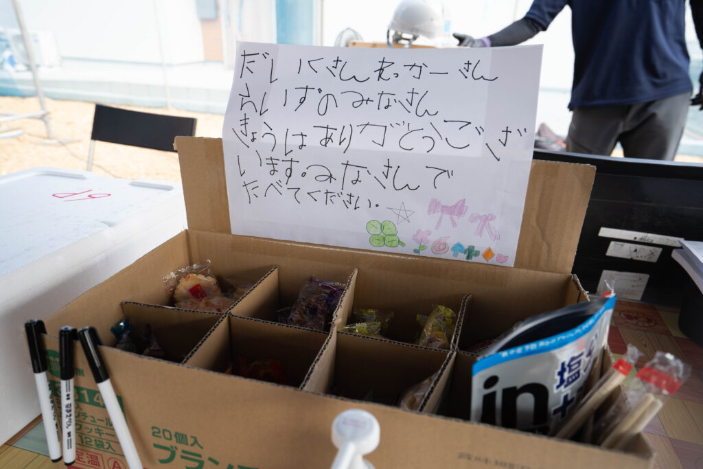 娘さんのSちゃんはこんな猛暑にも関わらず元気いっぱいに現場を走り回っておりました♩休憩スペースには、メッセージ付きで差し入れもあって・・これは大工さんも喜びます.。o〇