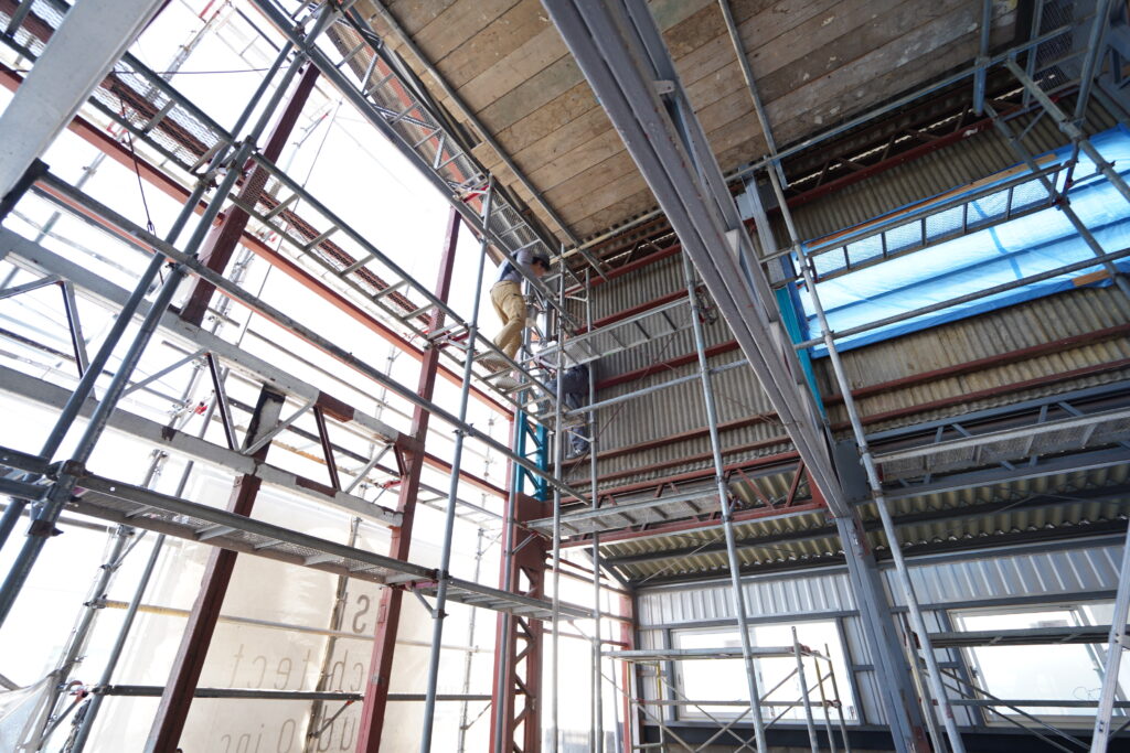 すっきりしていた倉庫内は今は木材が組まれいています!